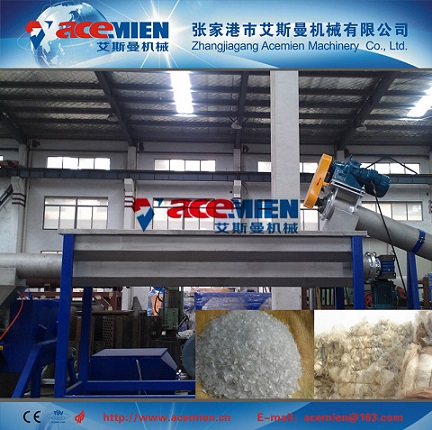 | Cleaning film scraps and separating remained dirt and dust Motor power of thumbwheel:0.75KW Quantity of thumbwheel: 6sets Equipped with a impurity-suction pump Motor power of horizontal screw loader:1.5kw Tank dimension:4.4m(L)*1.02m(w)*1.2m(H) Part contact with raw materials: stainless steel |