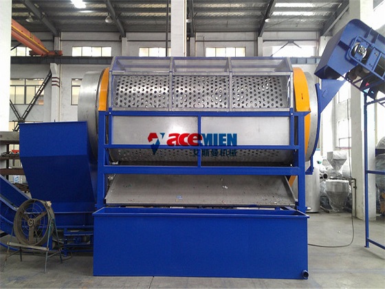 | Removing labels from bottles Motor power: 7.5KW Fan power: 3KW Dimension:4500*2500*3500mm Principle: remove the labels by friction between screen and arms Remove 90-98% labels and 60% caps, decrease the pressure of downstream |